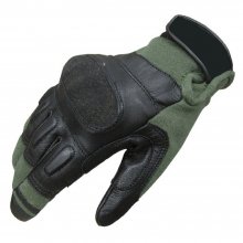 Crafted from goatskin leather and knit Kevlar fabric. Adjustable hook and loop closure with leather tab
