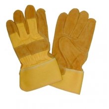 Canadian style work gloves made by cow leather and rubberized fabric cuff
