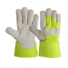 Canadian style work gloves made by cow split leather and rubberized fabric cuff