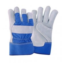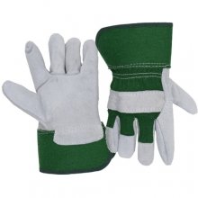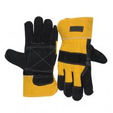 Canadian style work gloves made by cow split leather and rubberized fabric cuff